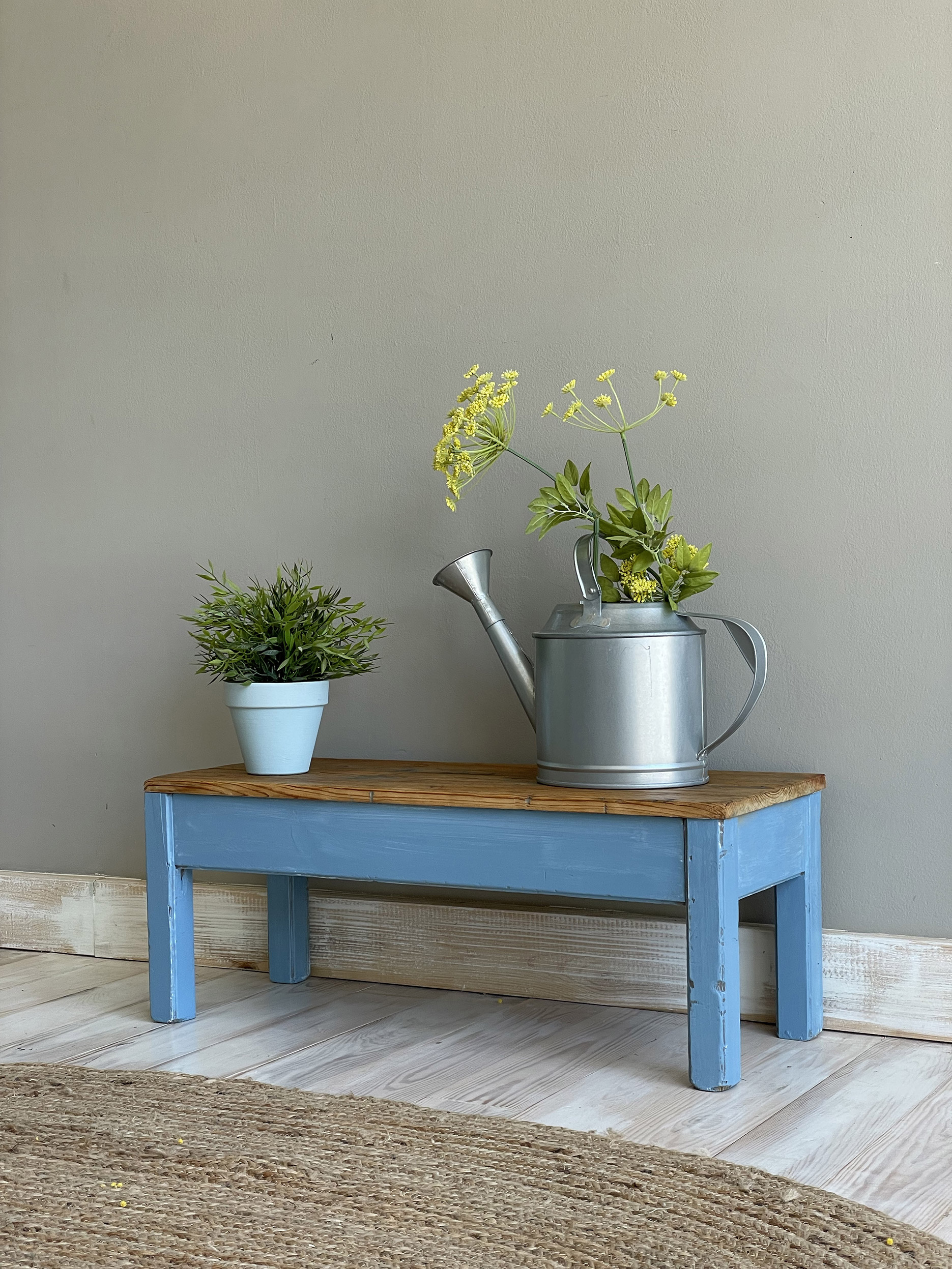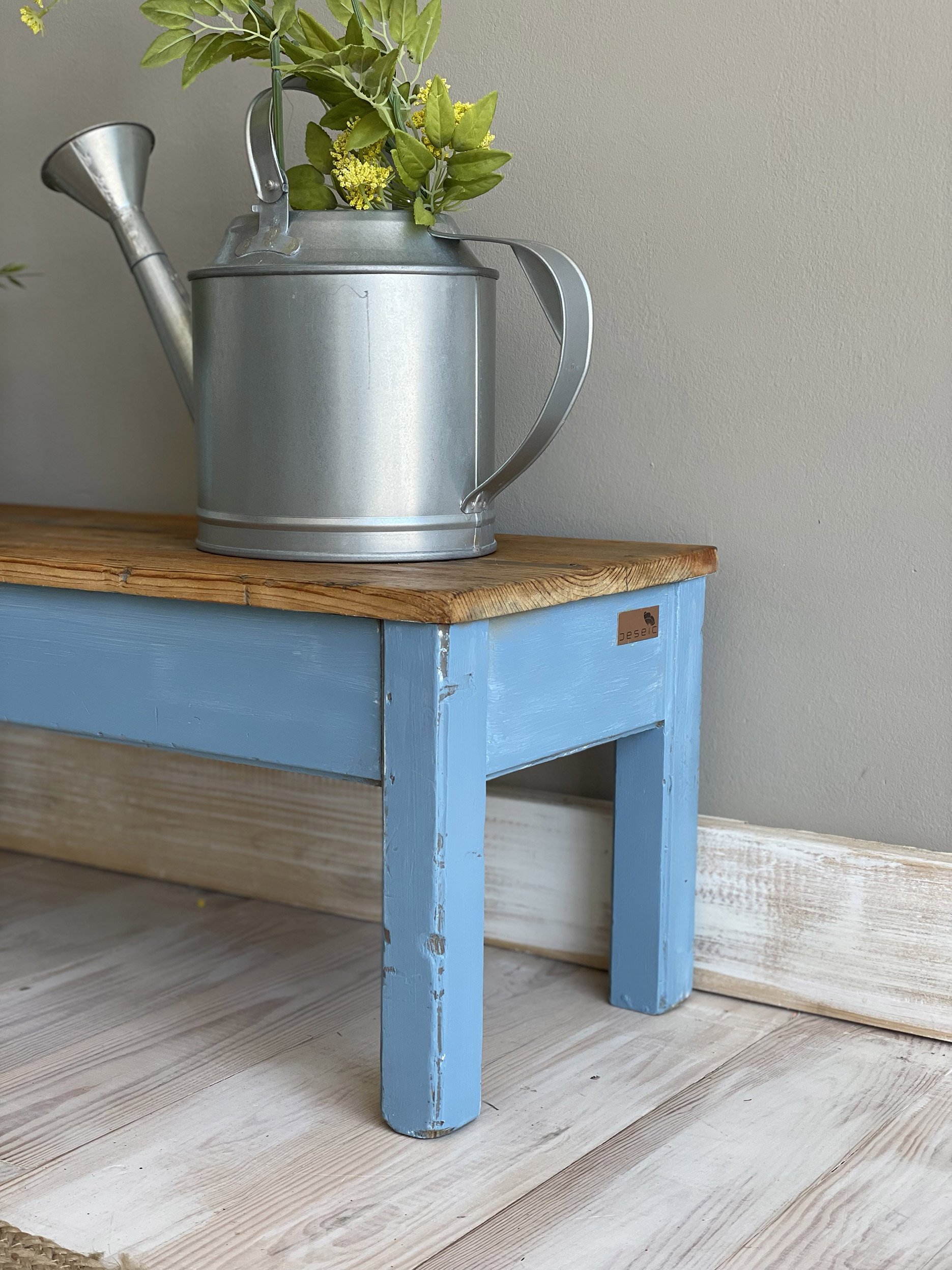 Sobre de color natural de la fusta i potes pintades en color blau real satinat.