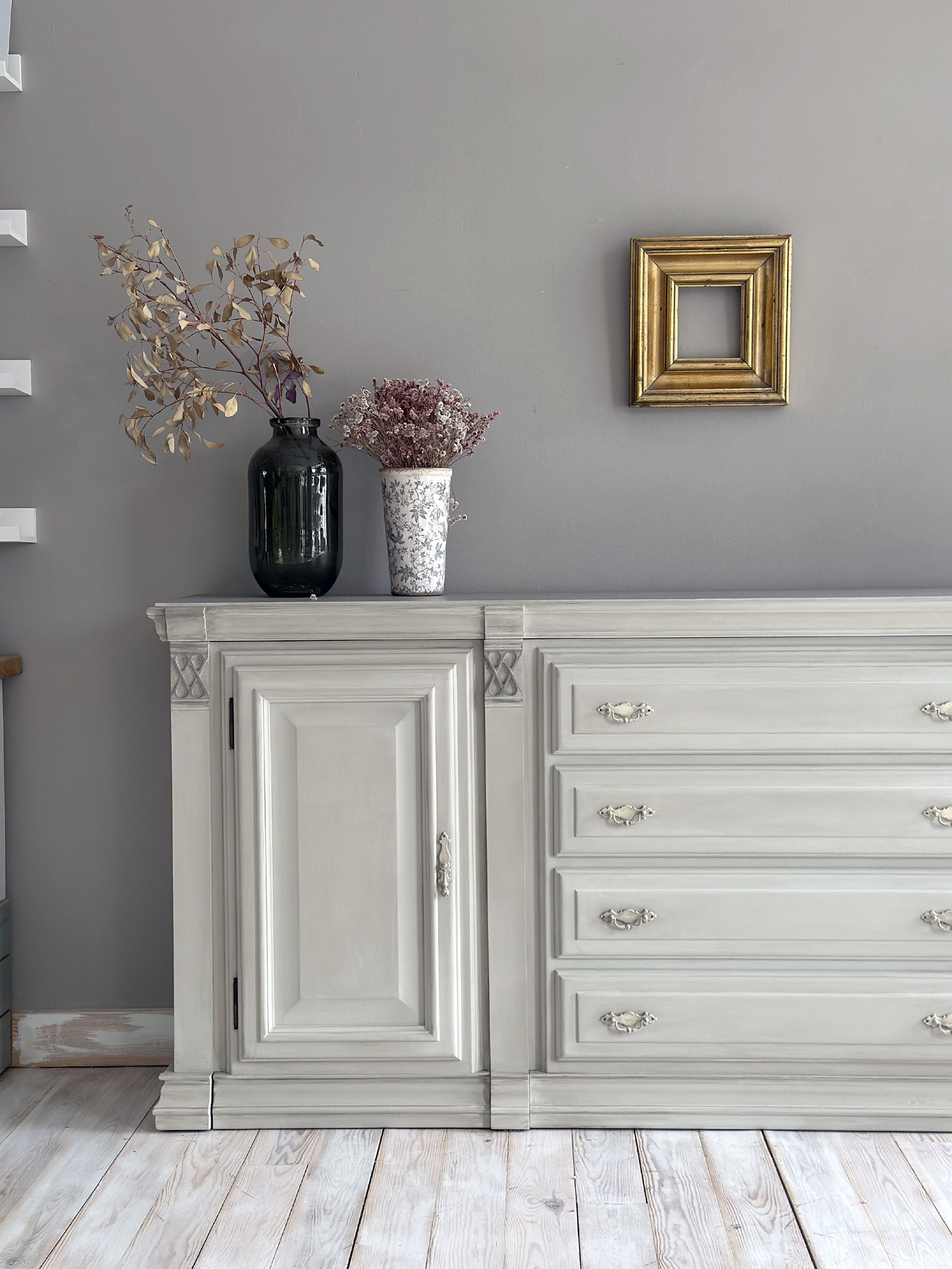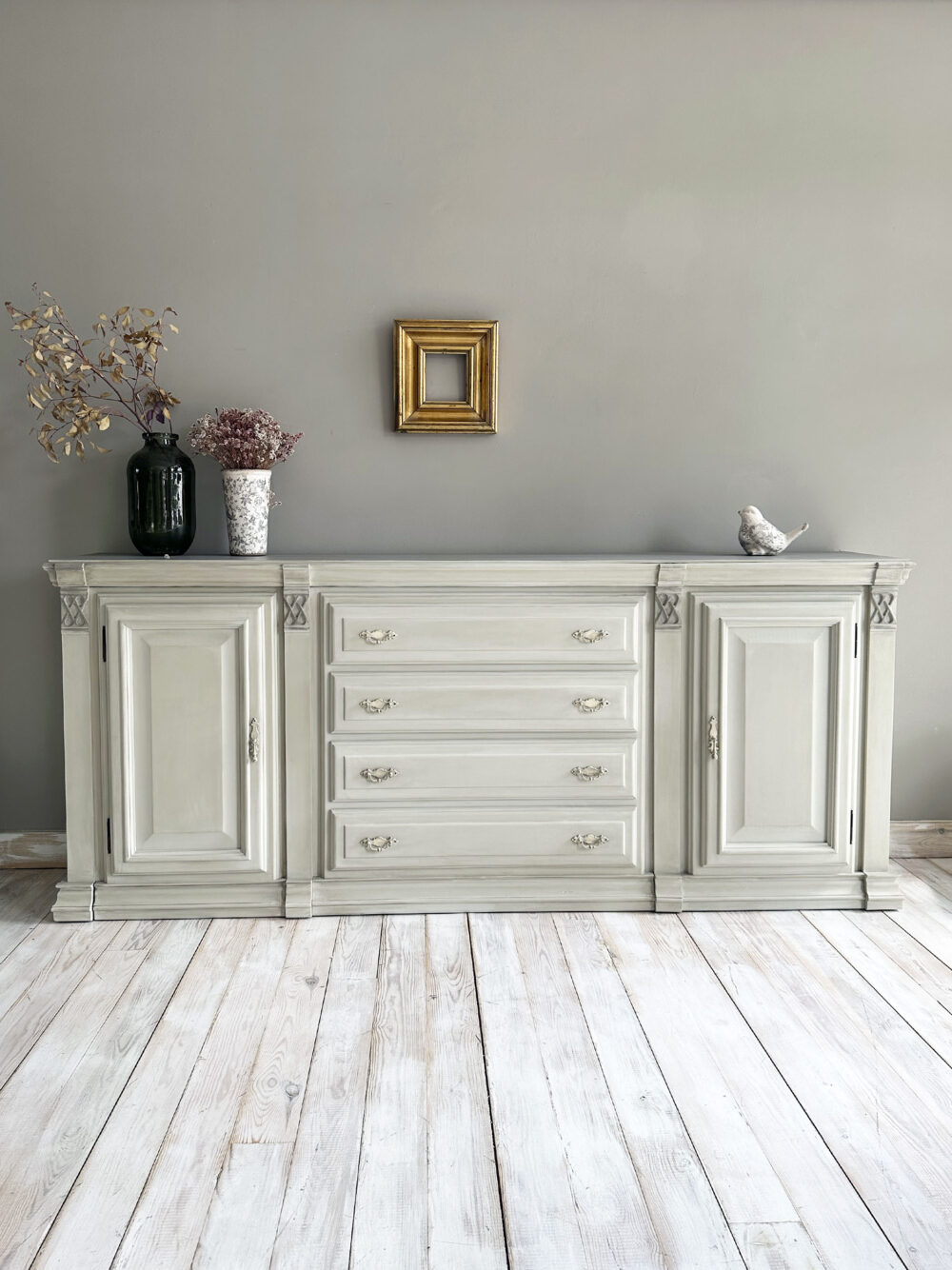 Bufet estil clàssic en color llí i pàtina en cera de color taupé.