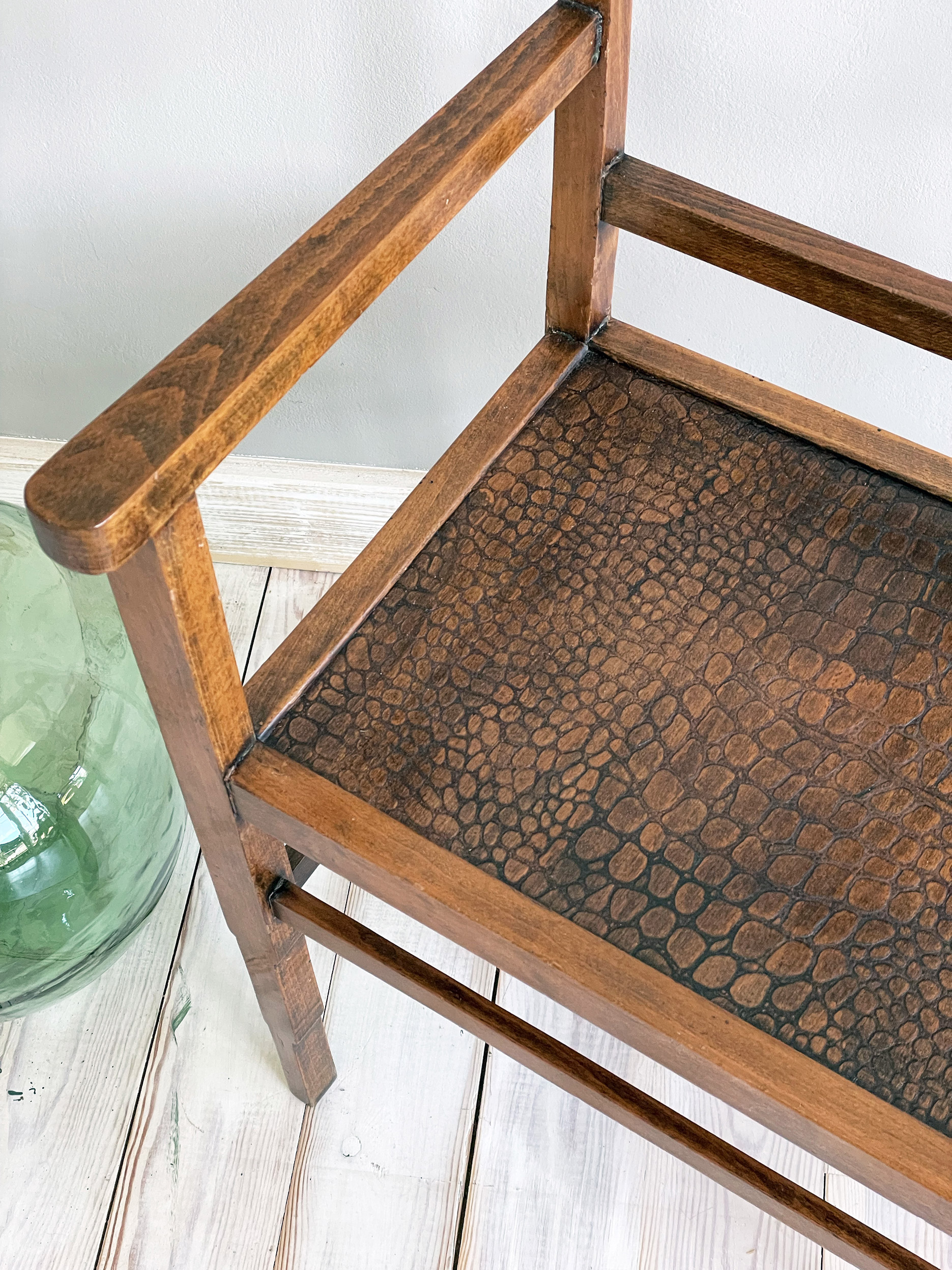Seient de chapa de fusta original de la peça que imita el gravat de la pell.