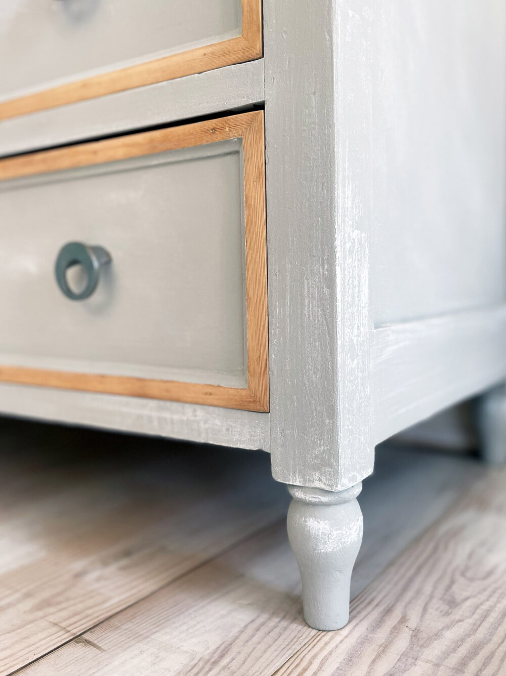 Calaixera de fusta massissa de pi en acabat vintage.