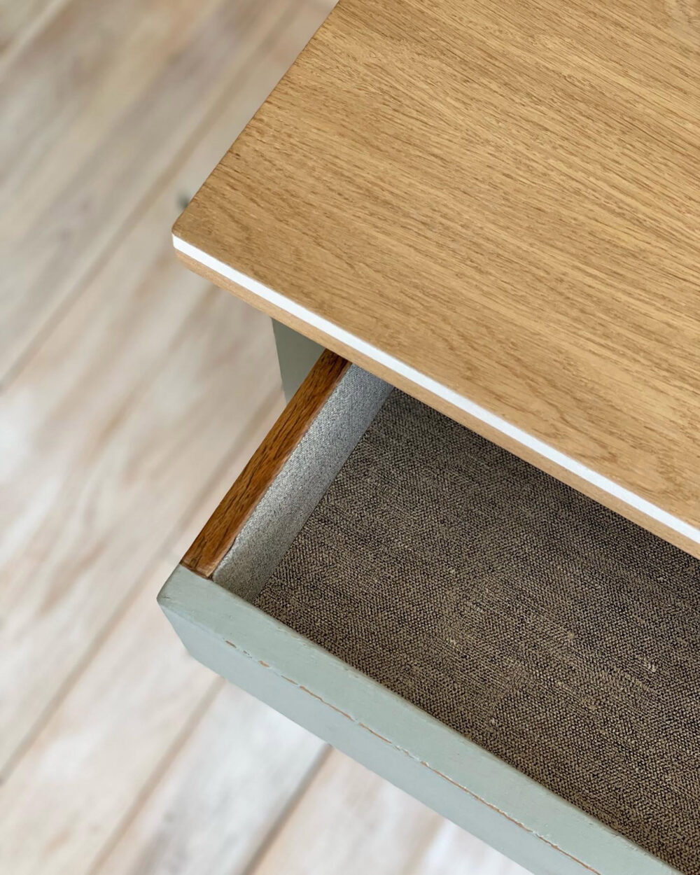 Calaixos empapelats en textura de llí de color xocolata.