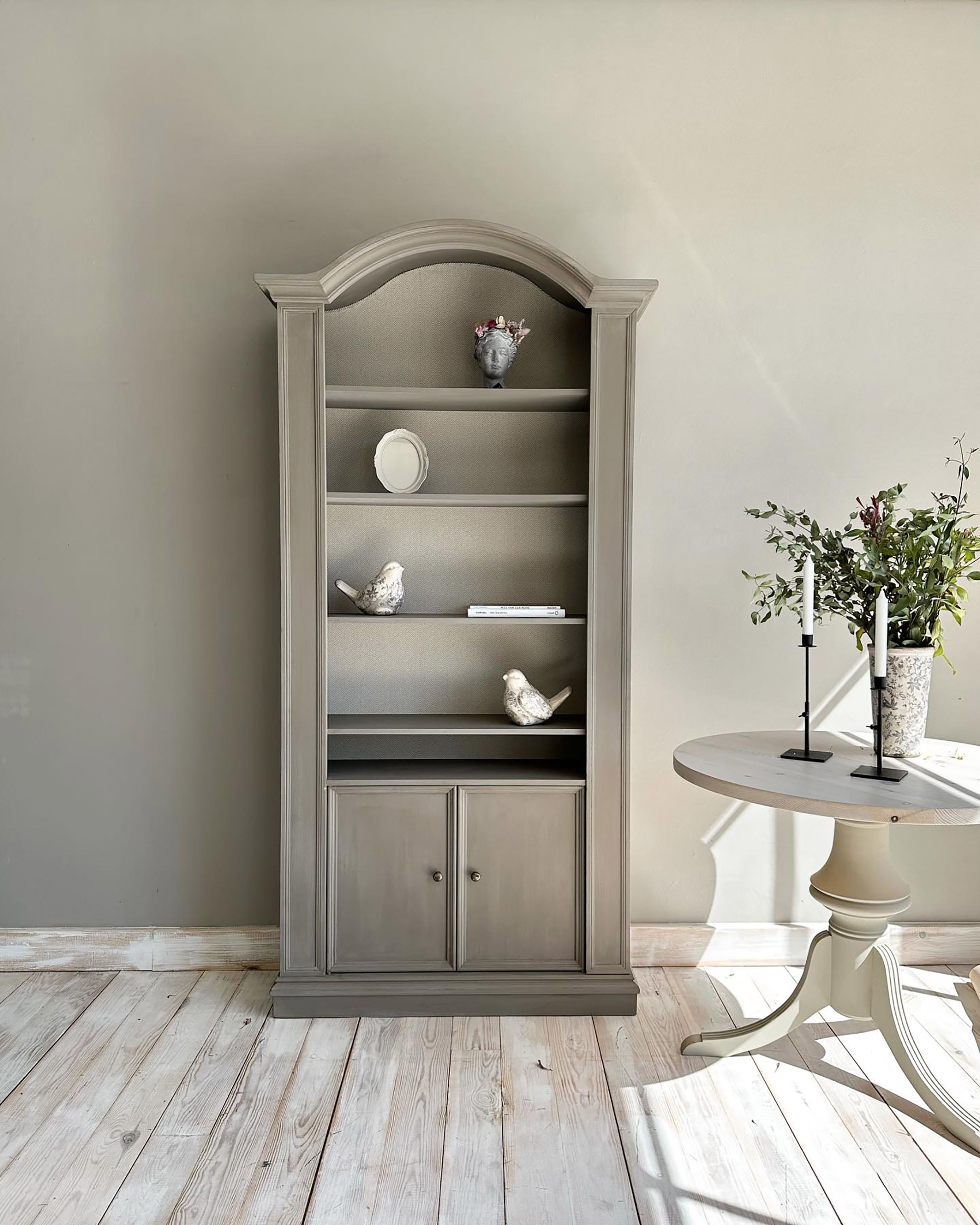 Elegant llibreria amb portes i tivadors oxidats.